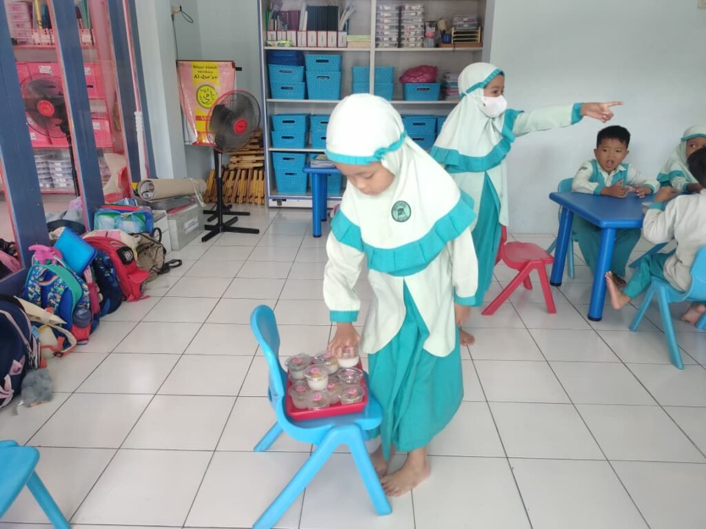 Selain itu, tanggung jawab dalam menghabiskan snack menjadi bentuk latihan sederhana bagi anak untuk belajar menghargai rezeki. Anak diarahkan untuk mengambil makanan secukupnya dan menyelesaikan apa yang sudah diambil tanpa menyisakan atau membuangnya. Kebiasaan ini mengajarkan pentingnya rasa syukur serta menumbuhkan kesadaran untuk bertanggung jawab atas pilihan yang dibuat. Dari hal kecil seperti ini, anak mulai memahami makna kedisiplinan dalam menjaga amanah dan menghargai usaha orang lain.